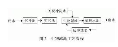 9、生物滤池:其最大的特点是集生物氧化和截留悬浮固体于一体,节省了后续沉淀池,厌氧水解—高负荷生物滤池处理系统集初沉池、曝气池、污泥回流设施以及供氧设施等于一身,大大简化了污水处理流程。生物滤池工艺流程见图2。